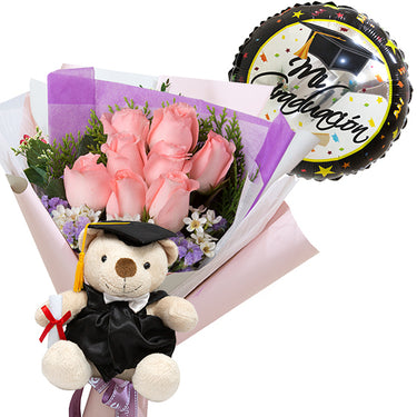 8 Inch Graduation Bear, Hand Bouquet & Balloon.