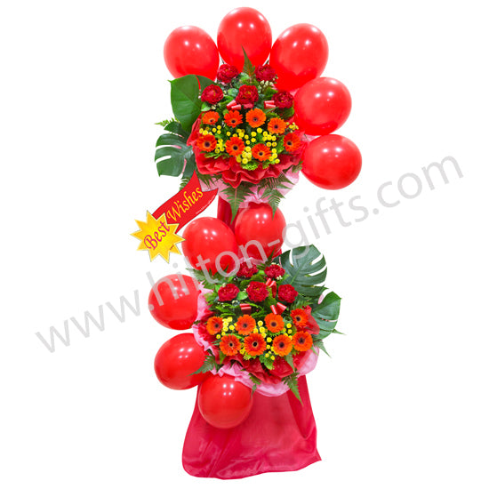 Of Mix Red Gerberas and Yellow Pom Pom ,Red Balloon
