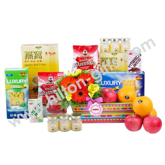 Bird Nest with Ginseng with White Fungus & Rock Sugar (3x45ml), Luxury, Quaker Oatmeal, Vitasoy Honeydew, Fresh Mixed Fruits, Flowers & Packaging.