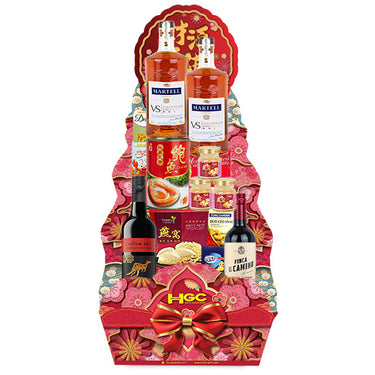 Martell VS Fine Cognac (2 x 70cl) $1000, Camino Red Wine 750ml $55, Yellow Tail Australia Red Wine 750ml $55, Tradition Abalone 425g $50, Quality Birdnest with American Ginseng with White Fungus & Rock Sugar (3 x 70ml) $25, Vegetable Biscuit 168g, Fruit Plus Candy 150g $5, Camel Mixed Nut 80g $5, Prawn Sauce Crackers 60g $8, Tong Garden Potato Snack 40g $5, Cuttlefish 40g $5, Amico Crispy Rice Flake 55g $5. Total Retail Price: $1265 (w/gst $1378.85) & Chinese New Year Packaging. Pls Note That The Packaging Can Be Change According to Seasons.