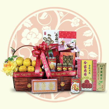 Scallop 9pcs 30g, Golden Rabbit Bird's Nest with White Fungus Rock Sugar (3x45ml), Fatt Choy 10gm, New Moon Superior Shark's Fin Soup 425g, New Peng Hiang Prawn Rolls 80g, Dried Mushroom 50g, Mandarin Oranges 18pcs, Packaging with Auspicious Decoratives.