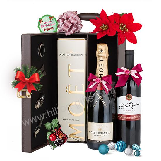 Carlo Rossi California Red Wine750m ,With HGC Christmas Leather Christmas Double Wine Box with