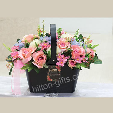 Artificial Pink Roses & Blue Hydrangea With Pink Hydrangea.